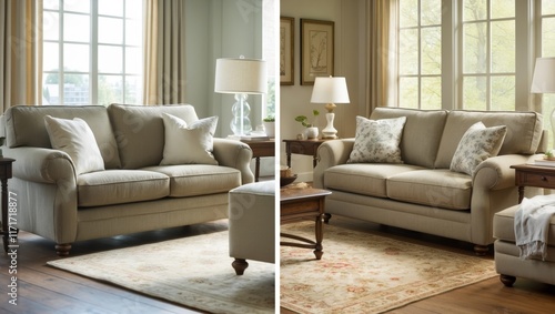 © Artem, Fototapeta premium Before and after cleaning a sofa in room