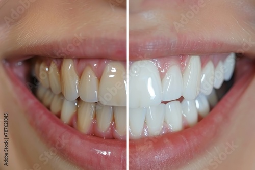 © LimeSky, Fototapeta premium Before and after dental makeover with ceramic veneers and crowns