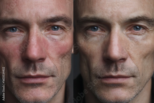 © rinrada, Fototapeta premium BeforeAfter Red and sensitive skin on the cheeks. Comparison images before and after using anti-allergic cream.