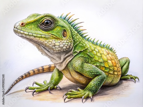 © kansak01, Fototapeta premium * Begin with a rectangle for the lizard's body, then add a pointed triangle for the head, tail,