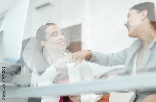 Obraz premium behind the glass.colleagues celebrate their success