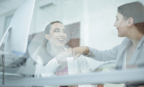 © ASDF, Obraz premium behind the glass.colleagues celebrate their success