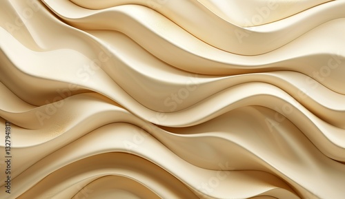 © nikolettamuhari, Obraz premium Beige Abstract Fabric with Soft 3D Waves and Layered Folds