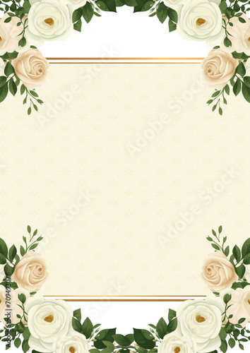© SyahCreation, Fototapeta premium Beige and white vector frame with foliage pattern background with flora and flower