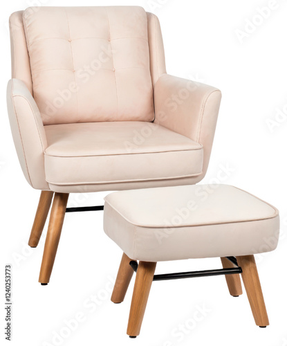 © lovetnihouse, Naklejka premium Beige armchair with ottoman isolated with transparent background