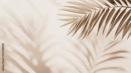 © KhaizanGraphic, Obraz premium Beige background with palm leaf and shadow.