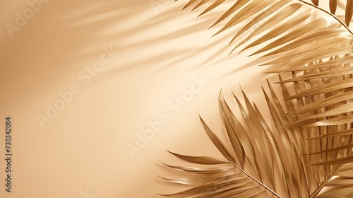 Obraz premium Beige background with shadow and palm leaves