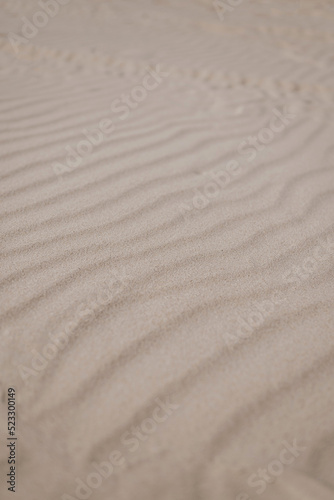 © Floral Deco, Obraz premium Beige beach sand waves surface texture. Desert dune landscape