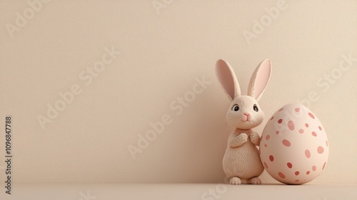 Obraz premium Beige Bunny with Polka-Dotted Easter Egg