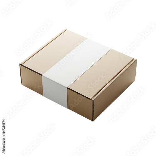 © Creativearts, Obraz premium Beige cardboard box with a white label isolated on transparent background. This package is ideal for e-commerce product presentations and shipping visuals.