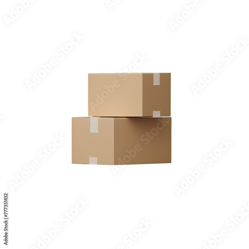 © S A H I N , Obraz premium beige cardboard boxes with brown tape. on Transparent Background 3d render.png Ai generated