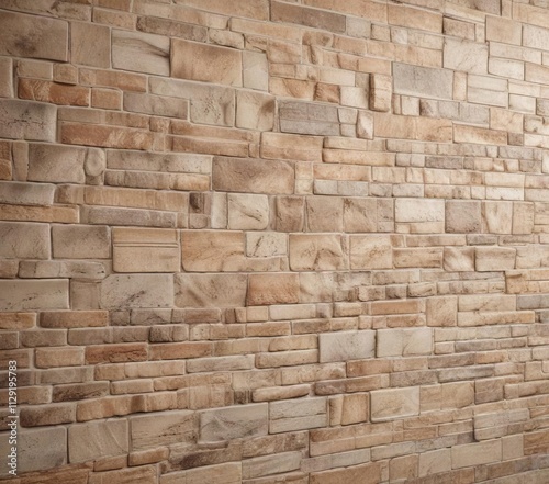 Fototapeta premium Beige ceramic brick tile wall with rustic texture and warm light, textured, traditional, interior