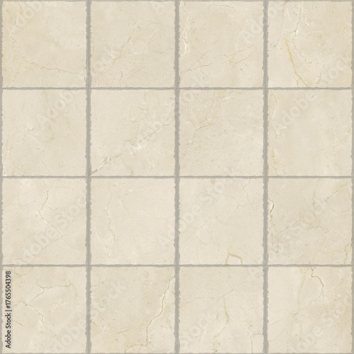 Obraz premium Beige ceramic tile floor with grid pattern and subtle veining
