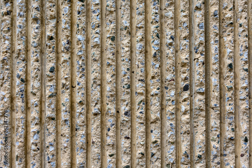 Fototapeta premium Beige concrete wall pattern vertical lines and stripes. Design concept.