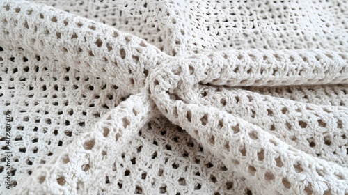 © Abdul, Obraz premium Beige Crochet Knit Texture Background Pattern Fabric