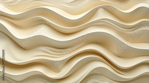 Obraz premium Beige 3D decorative wall panel with wavy pattern, light brown pearl texture,...
