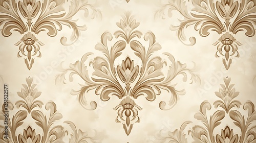 Fototapeta premium Beige damask pattern background with a vintage