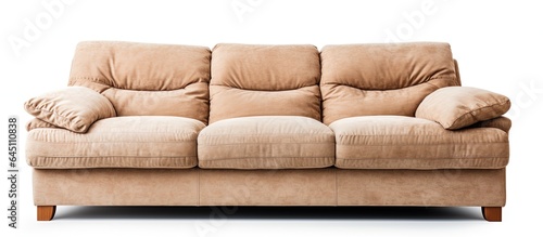 © Lasvu, Obraz premium Beige fabric sofa, three seats, isolated on white background.