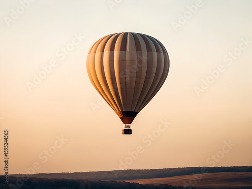 Naklejka premium Beige Hot Air Balloon Soaring Over Tan Landscape at Sunrise