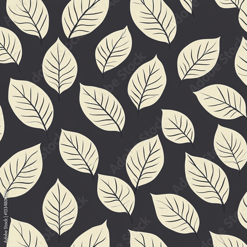 © Prachya, Fototapeta premium Beige leaf pattern on dark background