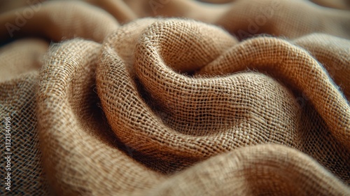 © mochiro, Fototapeta premium Beige linen fabric draped in swirls
