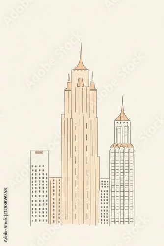 © Rattanachai, Naklejka premium Beige Minimalist Cityscape Illustration Featuring Tall Buildings With Cityscapes And Structures Drawing Styles And Architectural Elements In Neutral Tones Featuring Buildings And Lines And Shapes And
