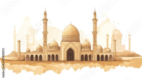 © Famili barokah, Fototapeta premium Beige mosque illustration