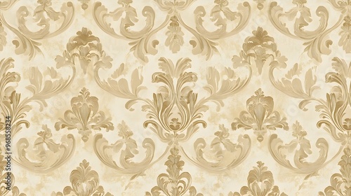 © HiSea, Fototapeta premium Beige Ornate Swirls Floral Pattern Background Texture