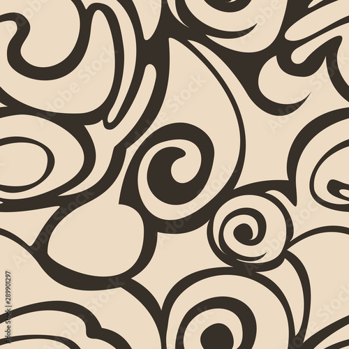 © ejelo, Obraz premium Beige pattern from waves of flourishes and abstract shapes on a dark background.