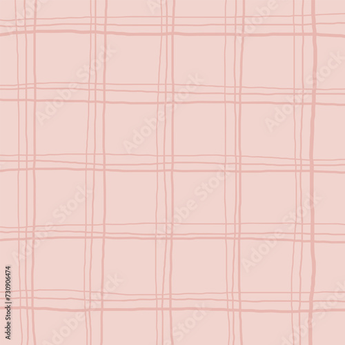 © Анастасия Красавина, Fototapeta premium beige, pink, red, pale background with brush texture effect, weave plaid style fine broken lines. Irregular check repeat pattern. Square diagonal shape, grunge noise texture, distortion.