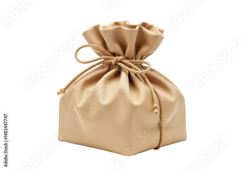 © Sarwar, Obraz premium Beige pouch with drawstring isolated on white background