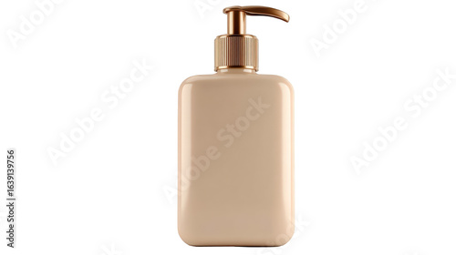 © Image Haven, Obraz premium Beige Rectangular Dispenser Bottle with Gold Pump.