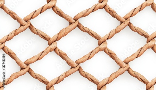 © Kettisak, Naklejka premium Beige Rope Net Seamless Pattern on White Background