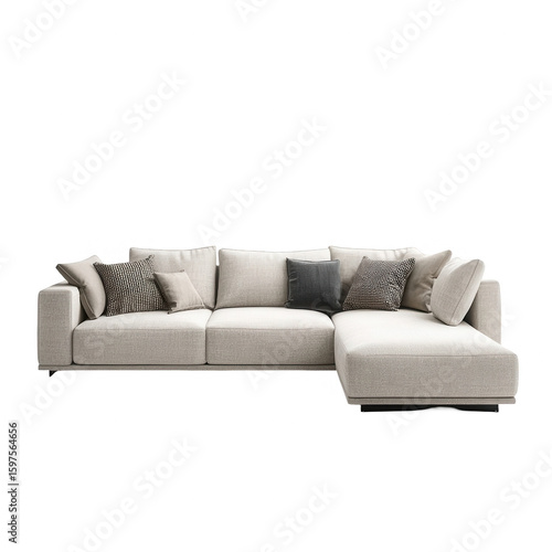 Fototapeta premium Beige sectional sofa with cushions