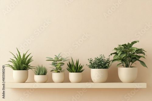 Obraz premium Beige shelf with potted plants (1)