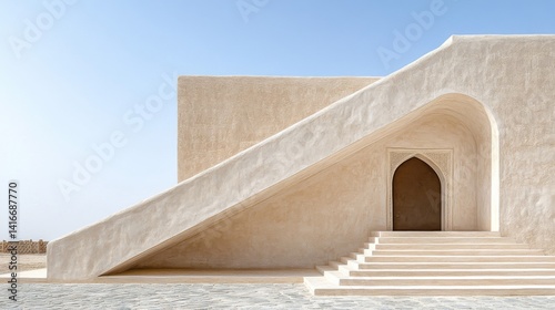 © UtkarshBay, Obraz premium Beige Stone Building with Modern Architecture and Ramp