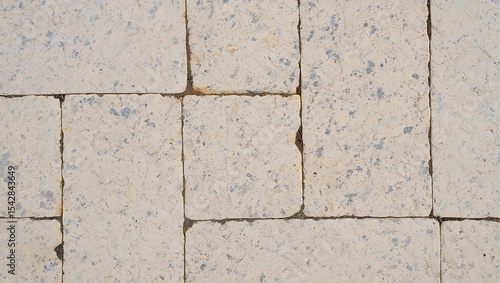 Fototapeta premium Beige stone paving slabs create a classic outdoor floor.