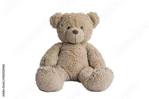 © Rizki, Obraz premium Beige teddy bear sits, facing forward