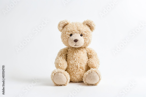 © Rysak, Obraz premium Beige teddy bear sitting on white background