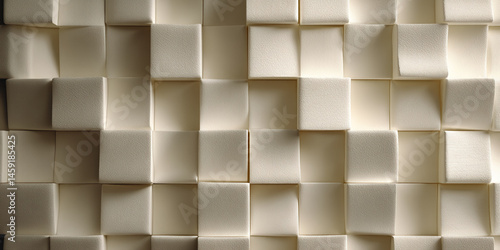 Fototapeta premium Beige textured cubes create a three-dimensional pattern, showcasing a modern,...