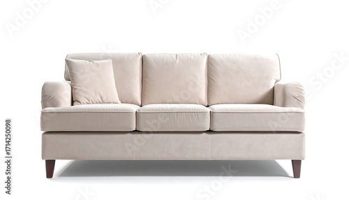 © Gani, Obraz premium Beige three-seat sofa against white background