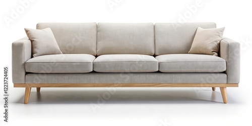 © Papillon, Fototapeta premium Beige Three-Seater Sofa with Light Wood Legs