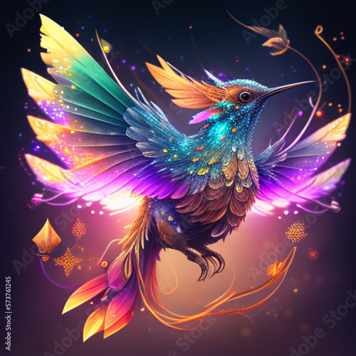 © Zahreen, Fototapeta premium Beija flor multi colorido e brilhante