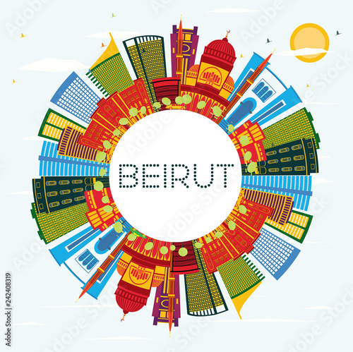 Obraz premium Beirut Lebanon City Skyline with Color Buildings, Blue Sky and Copy Space.