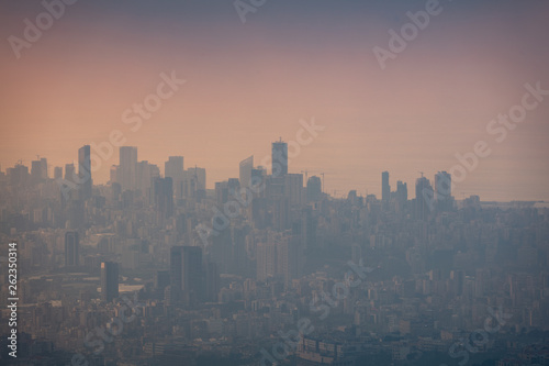 Obraz premium Beirut Skyline during Golden Hour from Aley, Middle East (Lebanon)