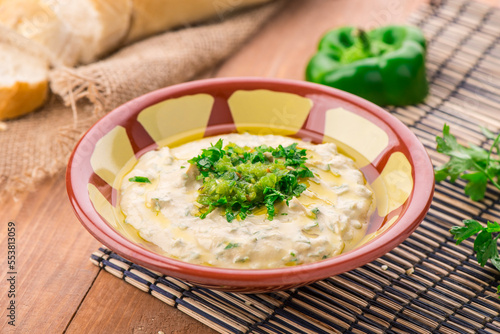 Obraz premium Beiruti hummus served in dish isolated on table side view of arabic food