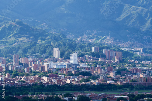 © nic, Obraz premium Belén distict or comuna 16 at the foot of the mountain in the afternoon sun, in Medellin, Colombia.