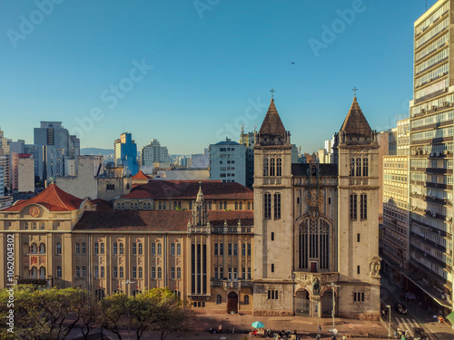 Obraz premium Bela vista superior do Centro Histórico de São Paulo em um dia ensolarado de...