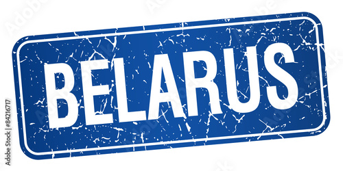 © Aquir, Fototapeta premium Belarus blue stamp isolated on white background
