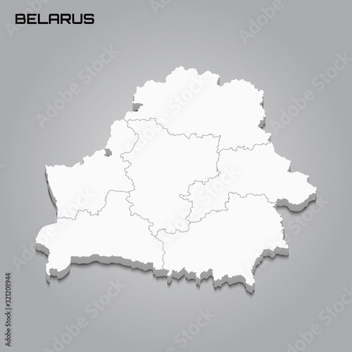 © magr80, Fototapeta premium Belarus 3d map with borders of regions